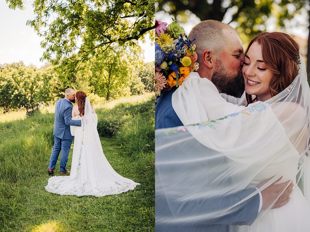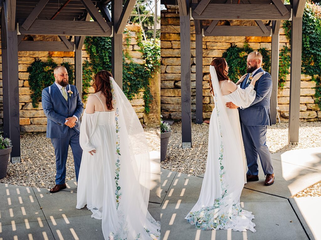 You know those moments that just melt your heart? That was this one. Kiley and Nate’s first look was so genuine: quiet, emotional, and full of that deep, happy kind of love that you can just feel. And then there was her veil… oh my gosh, her veil! Kiley chose the most beautiful floral embroidered veil, and Nate’s face when he saw it said everything.