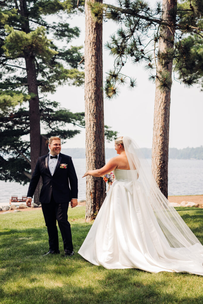 Sydney grew up in Northern Wisconsin and spent her summers on the lake, so choosing Chippewa Retreat Resort for their wedding was more than just picking a venue. It felt like home. These two spend so much time up north together and wanted their wedding to feel nostalgic and personal and they completely achieved that. Towering pines, sparkling water, cozy cabins, and this peaceful atmosphere that wraps around you the second you arrive.