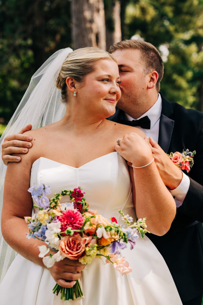 Before the night picked up again, we slipped down to the lake for a few final portraits. Soft light, quiet water, and this moment that felt like the perfect summary of everything they hoped their wedding would be. A little nostalgic, a little magical, completely them.