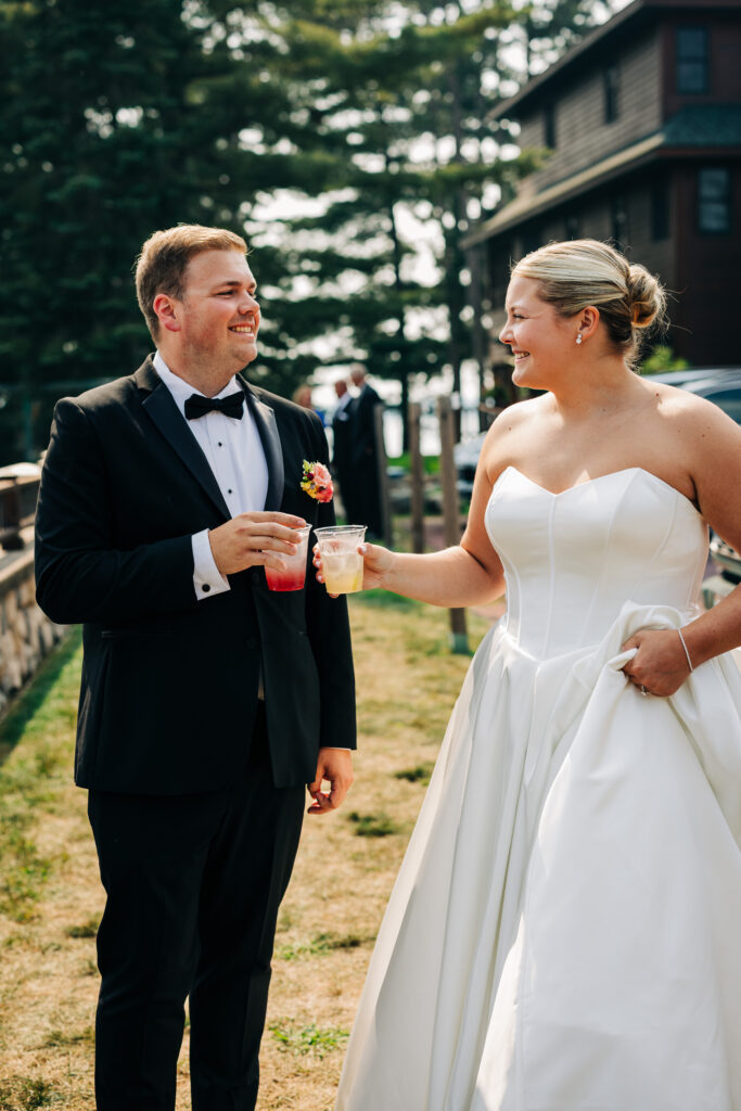 From the moment I arrived, I knew their Chippewa Retreat Resort wedding was going to be something special. I got to travel up north and turn the whole thing into a little weekend getaway, and since the couple booked cabins for all of their vendors, it instantly felt warm and welcoming. I even grabbed dinner with their planner, Chastity, the night before, which made Saturday feel extra exciting and full of good energy.